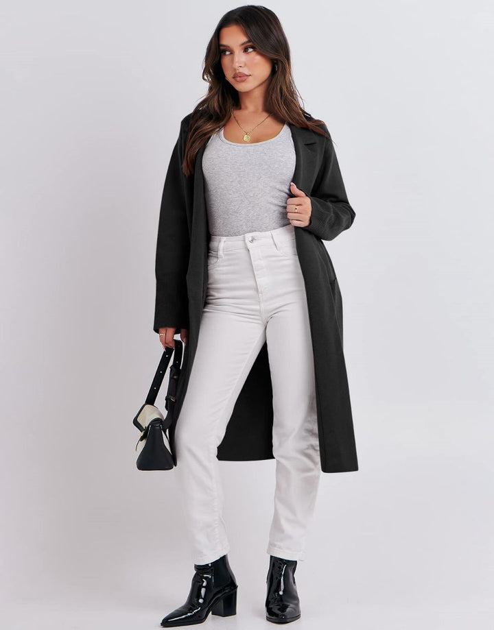 • Design - Newest addition to our sweater-blazer collection! Design lapel open front,long sleeve,slightly oversized,cozy fabric.
