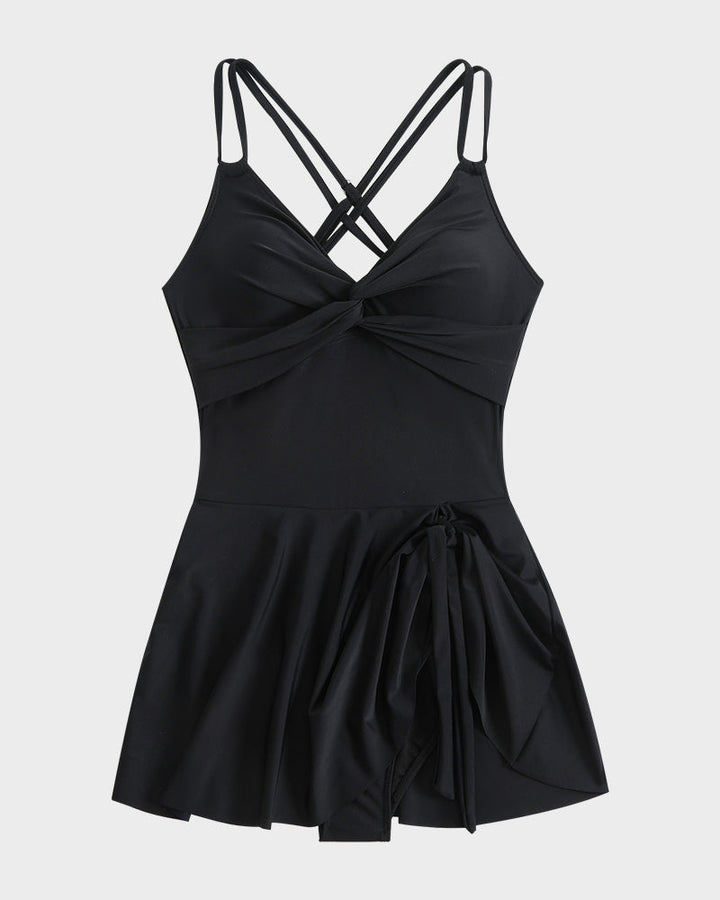 Introducing the Knot Hem Ruched One-Piece Swim Dress, a stylish and elegant choice for your beach or poolside adventures. This swim dress combines the comfort of a one-piece with the playful flair of a dress, ensuring you look fabulous while enjoying the sun.
