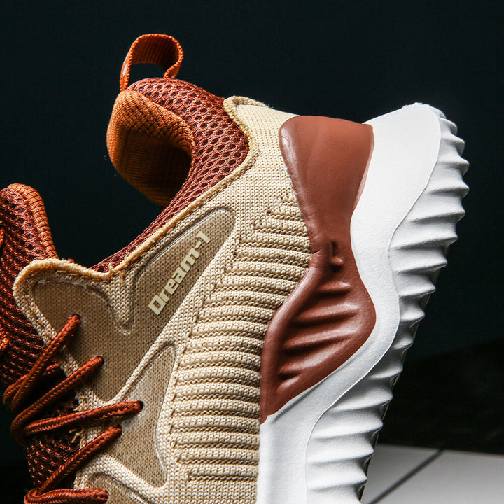 • The running shoes sole made from high elasticity MD material,the pattern on the bottom of sole features flexible grooves,strengthen the shoes ability of anti-skid and grip,helping users adapt to any road condition.