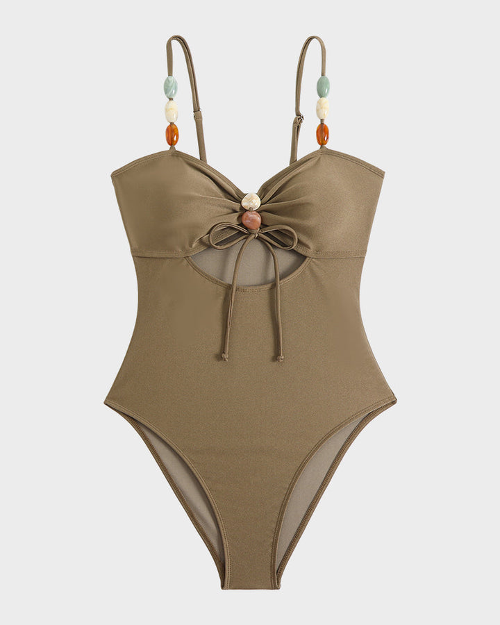 Featuring strategically placed cut-outs, this swimsuit enhances your curves and adds a daring element to your swimwear collection.Beautiful Beaded Accents