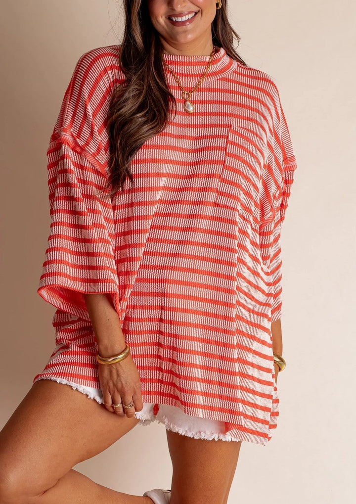 Women's Oversized High Neck Urban Ribbed Striped Top (Buy 2 Free Shipping)